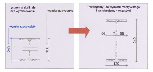 Rysunek pierwszy, czyli jak odczytać wymiary z rysunku wykonanego w skali, tzn. proporcjonalnie, ale bez wymiarów – chyba widać.