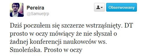 Dziś poczułem się szczerze wstrząśnięty. DT prosto w oczy mówiący że nie słyszał o żadnej konferencji naukowców ws. Smoleńska. Prosto w oczy