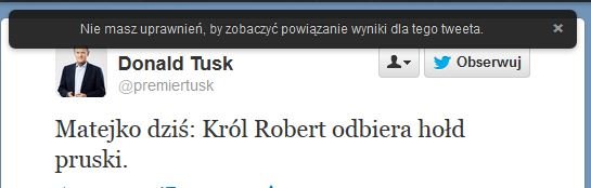 Zdziwił mnie dziwny wpis Pana Premiera Donalda Tuska via Twitter jakby prowokujący Niemców do wojny, ochłodzenia stosunków, czy c€ś, zupełnie jakby nie w stylu Donalda. A może z Angelą coś nie wyszło na urodzinach, odmówiła MU, czy cuś i się odgryza?