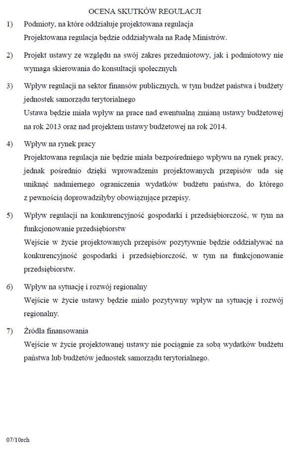 Tylko na Radę Ministrów będzie oddziaływała? A na obywateli np. nie wchodzących w skład i nie stanowiących zaplecza np. technicznego RM (nie mylić z radiem Maryja) - to już nie. No to mnie ten zapis uspokoił. I następujący po nim wydaje się być logiczną konsekwencją, no bo po co jakieś konsultacje z obywatelami, skoro ich nie dotyczy.