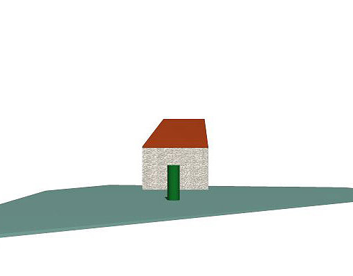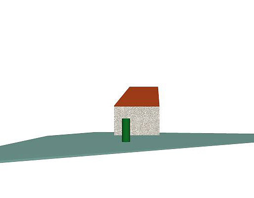 5.6.7. Robię „zdjęcia” modelu cały czas stojąc na wprost bocznej ściany (por. nr 3), tylko nieznacznie przesuwając się po linii prostej równoległej do ściany – krzak „wędruje”, a domek wygląda prawie tak samo! Gdyby był krzywy, w ogóle nie byłoby widać żadnych różnic. Które ujęcie jest „prawdziwe”?