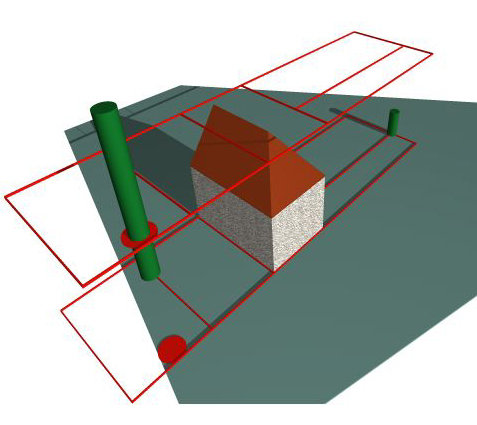 To jest prościutki przykład z wieloma danymi i zrobiony na szybko.  Niemniej wszystkie linie i położenia kółek są dokładnie wyliczone w stosunku do terenu i dokładnie zwymiarowane. Nie robię tych linii i kółek na „zdjęciach”, ja buduję proste  i kółka na rzucie modelu. Komputer to rysuje precyzyjnie w perspektywie i może poprzez nakładanie porównać do zdjęć rzeczywistych.