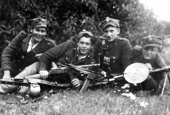Polscy Powstańcy z III szwadronu 5 Wileńskiej Brygady AK,dowodzeni przez Śp.Władysława Helińskiego ps.„Mały” (na zdj.2 od prawej) rozbijają w Lipinkach konwój UB/MO z więźniami.