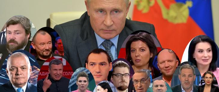 Najważniejszym kanałem propagandowego oddziaływania na społeczeństwo pozostaje w Rosji telewizja państwowa. Jej czołowi propagandyści, czerpiąc spore dochody ze swojej aktywności, dzień w dzień utrwalają w głowach Rosjan główne linie narracyjne rosyjskiej propagandy – kłamią na temat wojny na Ukrainie, wychwalają imperialistyczne zapędy Władimira Putina, szerzą fałszywe mity dotyczące historii, atakują i ośmieszają Unię Europejską oraz NATO, a jednocześnie budują w rosyjskiej świadomości poczucie zagrożenia i grożą państwom Zachodu, w tym Polsce. Szczególnie aktywni w tym zakresie są prowadzący programy o tematyce politycznej emitowane z dużą częstotliwością, którzy działają na zlecenie Kremla.