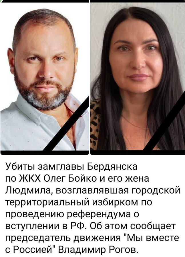 Lokalne prorosyjskie władze w Berdiańsku poinformowały, że podwójne morderstwo miało miejsce w osiedlu Kolonia. Eliminację zdrajców badają okupacyjne siły bezpieczeństwa.