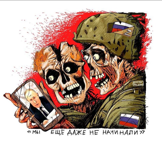 Jednocześnie rosyjscy zbrodniarze wojenni rozumieją, że ich szantaż raczej nie zrobi wrażenia na Ukraińcach, więc przygotowują się do wprowadzenia stanu wojennego i ogłoszenia powszechnej mobilizacji w Rosji w celu uratowania skóry tchórzliwego szczura z bunkra poprzez wrzucanie do pieca wojny na Ukrainie niedoświadczonego i niekompetentnego rosyjskiego mięsa armatniego.