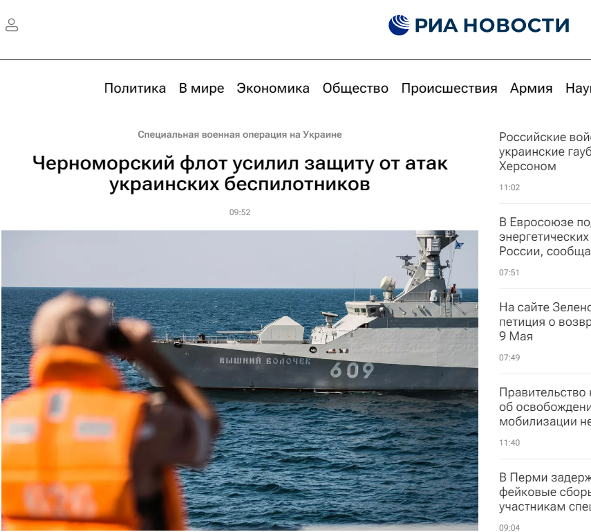Rosjanie donoszą o kolejnym "sukcesie" - wzmocniono ochronę okrętów Floty Czarnomorskiej przed atakiem ze strony ukraińskich aparatów bezzałogowych.(za RIA Novosti)