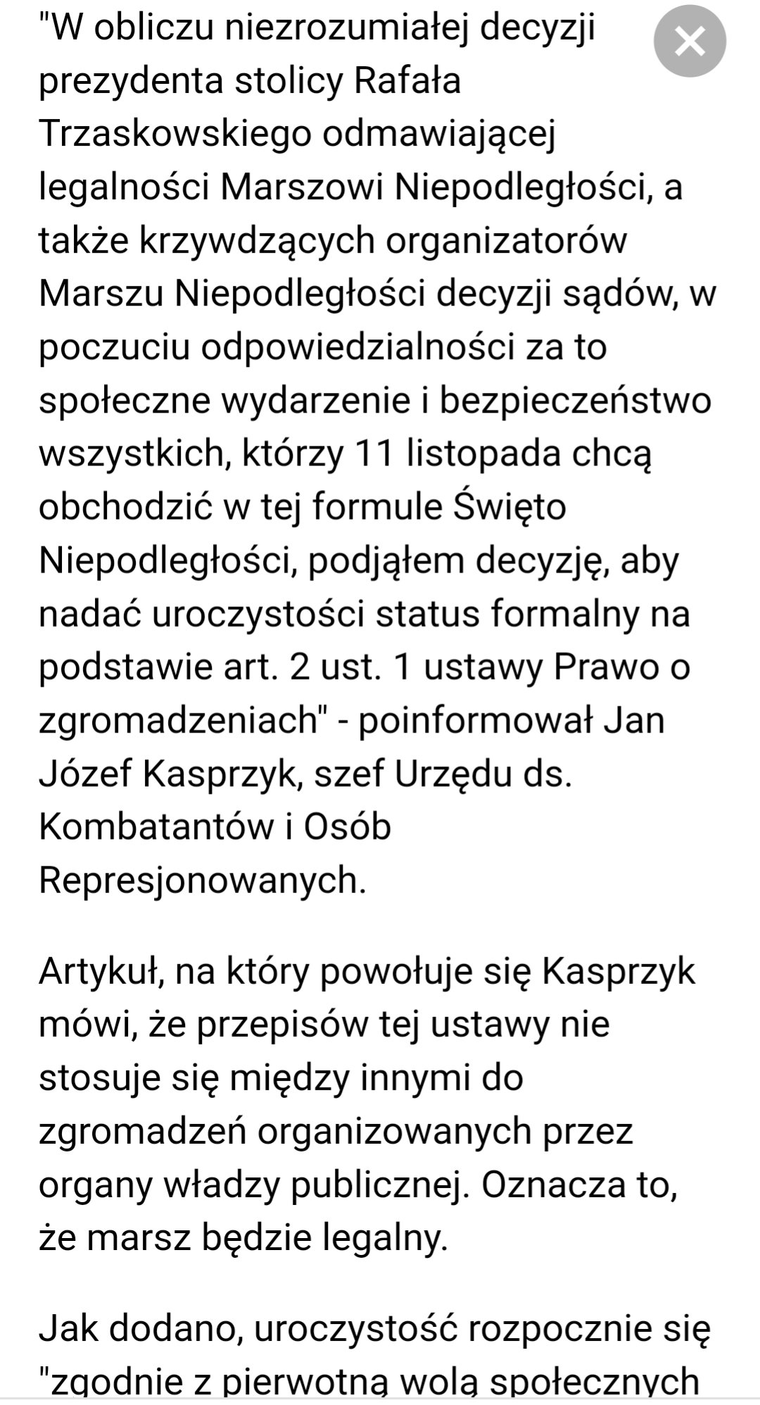 "PiS nie chciał zniszczyć, ani przejąć Marszu Niepodległosci. Raz jeden w 2021, kiedy Trzaskowski i sądy zabroniły przemarszu, minister Kasprzyk nadał MN status formalny."