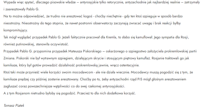 Oczywiście nie wiem, kto jest potencjalną ofiarą, której "kompromaty zostały zabezpieczone". Wrzucę natomiast parę komentarzy i wpisów osób, które były bardzo aktywne zarówno we wspieraniu, jak i obronie ruskiego szpiega.