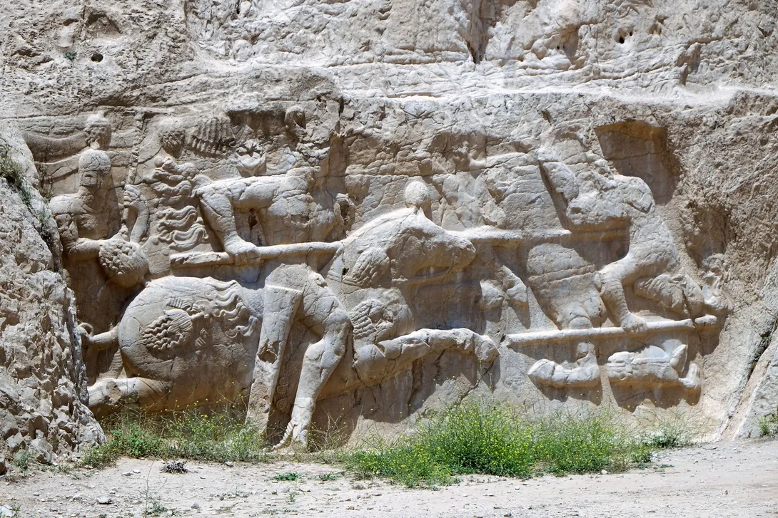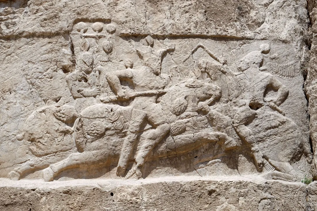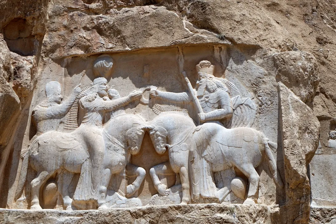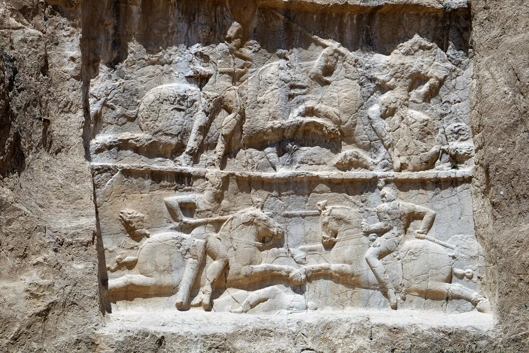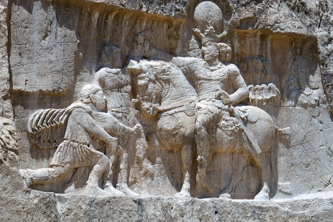Poniżej grobowców znajdują się reliefy gloryfikujące władców z dynastii Sasanidów (224–651r.):