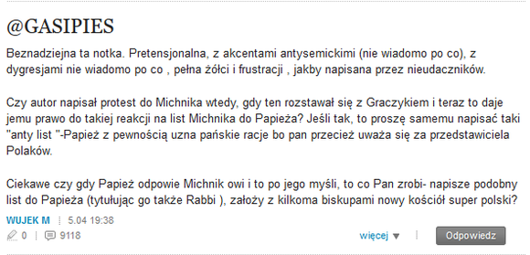 http://gasipies.salon24.pl/640241,rabbi-adasiu-piszemy-do-ciebie-w-sprawie-red-graczyka-i-gazety-w-polsce#comment_10148502 zamieszczony przez WUJEK M.