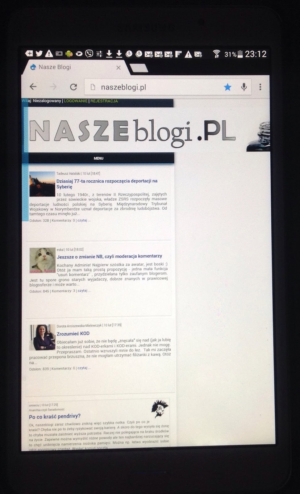 Acha: wpis dodany na NB nie jest widoczny na Niezależnej, czyli brak sprzężenia między obydwoma serwisami...