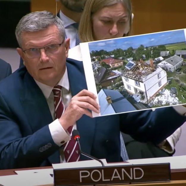 Poniżej wiceminister MSZ Marcin Bosacki w ONZ z dowodem agresji.