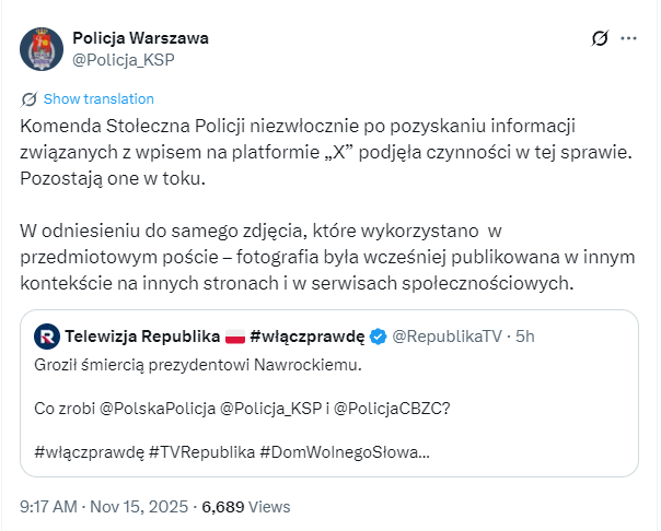 Policja tłumaczy, że zdjęcie jest z netu. Panowie milicjanci nie "rżnijcie głupa" bo po emerytkę za wpis na X przeciwko Owsiakowi udała się cała wasza ekipa.