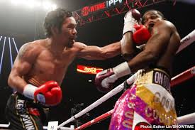 To już któraś tam kolejna walka Manny'ego, którą nagrałem, łącznie z tymi "bańkami", jakie mu sprawił w 2012 roku Marquez, po których, wydawało się, że już się nie podźwignie i przegrany skończy karierę. Ku mojej, jak i milionów ludzi na świecie (w tym oczywiście 100 milionów Filipińczyków), odrodził się i powrócił na ring, nic nie tracąc ze swojej klasy.
