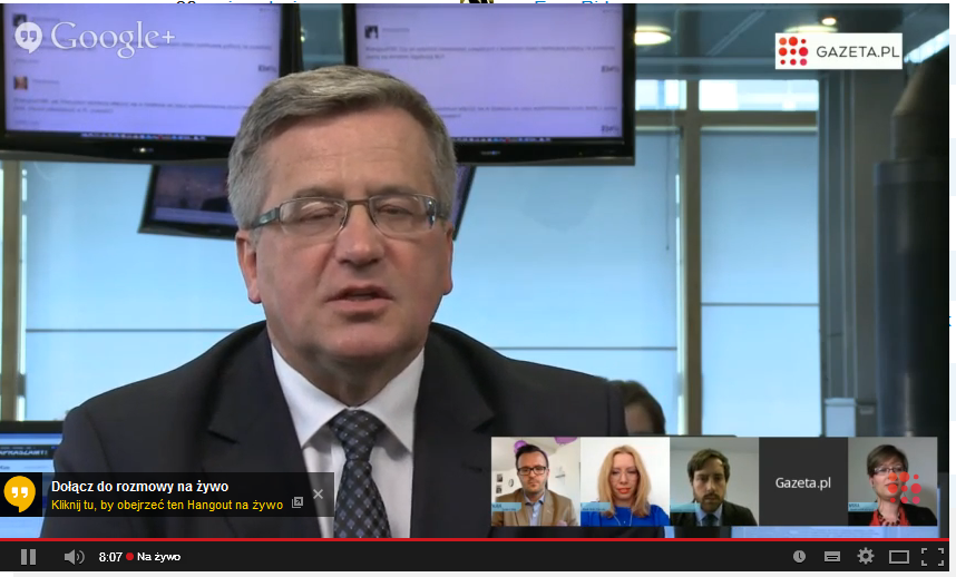 Oraz prowadzący red. Adam Ozga @aozga "O 13:00 będę moderował #HangoutPBK z @Komorowski. Pytania zadadzą m.in @KamilaSidor @przemekspider @JakubKrupaFE" https://twitter.com/aozga/status/588225273289670657