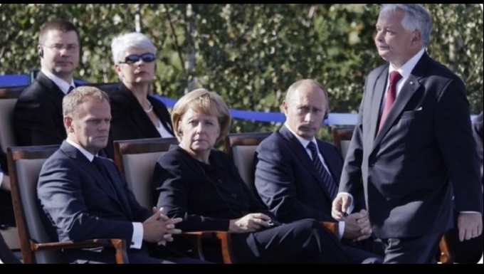 Zwróćcie uwagę na to zdjęcie, pewnie każdy z Was je widział ze sto razy. Mnie za każdym razem aż serce boli, idzie Prezydent Polski, żadne z nich nawet nie spojrzało na niego, jakby był powietrzem. Putin,Merkel, wiadomo nasi wrogowie, a Tusk? Premier Polski? Co to za człowiek..