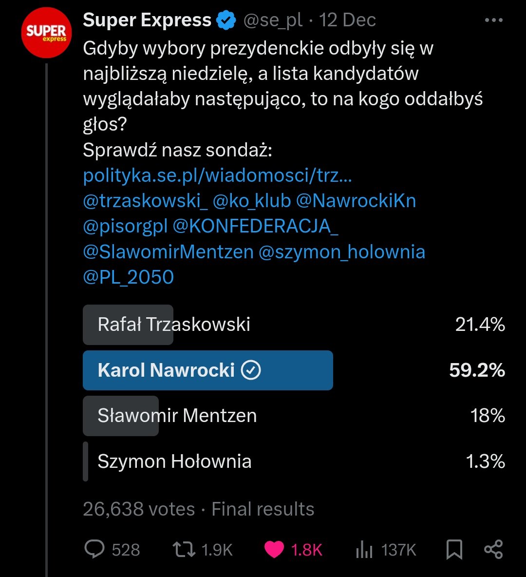 "....polowania na Karola Nawrockiego...." mam wrażenie, że to starannie zaplanowana kampania np. przez  Jacka Kurskiego lub kogoś jego pokroju, kto jest fachowcem a w tej dziedzinie a Kurski jest. By Karol Nawrocki osiągnął sukces to punkt pierwszy, zwiększyć jego rozpoznawalność i to się właśnie dzieje. I przyznam się, że na mnie to podziałało. Obiema rękami popieram Karola Nawrockiego. Dęte zarzuty tylko mnie utwierdziły, że jest to kandydat na którego czekałem  a traciłem już nadzieję, że ktoś taki się pojawi.