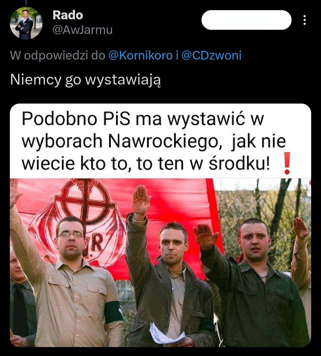 To dopiero jeden dzień a już tyle wrażeń i tak wiele wiemy o panu Nawrockim. A to hajluje, a to jest ścigany listem gończym w przyjaznej nam Rosji, a to związany ze światem przestępczym, może nawet jest zaszczepiony co niewybaczalne.....Tak gdzieś pod wieczór dowiemy się czym pudelkowy pan @smieciu nas uraczy i z ilu słów będzie złożony komentarz pana @Jabe. Jeżeli> dwu to oznacza że kandydat negatywny a sam pan Jabe wstrząśnięty niestosownością kandydatury.